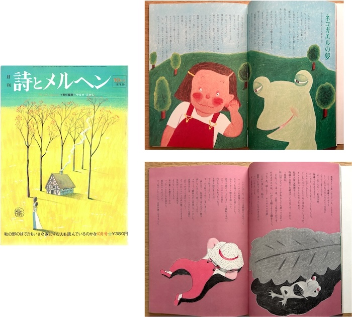| New 「ネコガエルの夢」 中山千夏|文+大橋歩|絵(8p)を掲載 詩とメルヘン 1974/10月号 通巻14号 責任編集|やなせたかし サンリオ 状態 スレ 経年劣化 値札痕 order number: Ayumi-028 price: \800- 雑誌『詩とメルヘン』の中に8p掲載。「ネコガエルの話をして」とカエルにせがまれた私は、ネコガエルなど知りません。しかし、昼寝をしていたら夢にネコガエルがでてきたのです、が・・・。 他にも「流れる街」別役実&上野紀子やくんぺい魔法ばなし「スミイカ」などが掲載されています。 images |