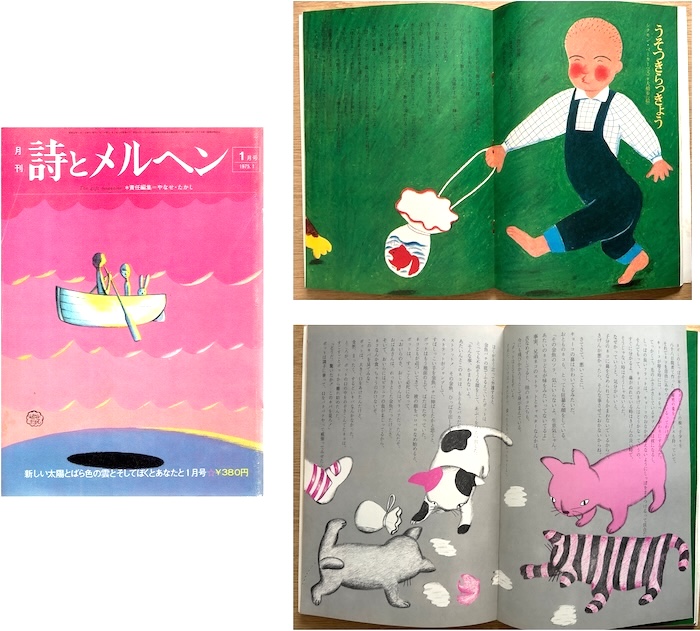 | New 「うそつきらっきょう」 シナモン・ベーカー|文+大橋歩|絵(8p)を掲載 詩とメルヘン 1975/1月号 通巻17号 責任編集|やなせたかし サンリオ 状態 スレ 経年劣化 値札痕 order number: Ayumi-029 price: \800- 雑誌『詩とメルヘン』の中に8p掲載。ぼくとあっちゃんが散歩してたら真っ赤ならっきょうがなっていました。あっちゃんが食べてみると、なんと驚いたことに、あっちゃんが話すことがすべてうそになってしまったのです・・・・。 他にも「アザラシの星」庄野英二&山下礼二やくんぺい魔法ばなし「探し虫」などが掲載されています。 images |