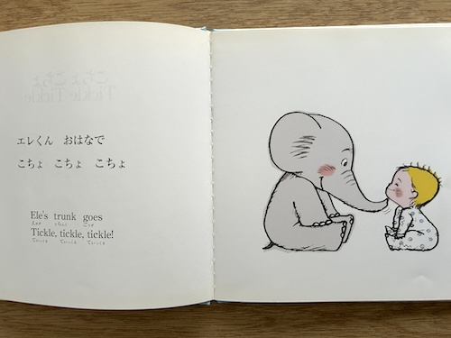 New こちょ こちょ Tickle Tickle (あいちゃんとエレンくんのえほん3) なかえよしを|作 上野紀子|絵 多田文子・石橋リエ|英語 ポプラ社 2003 第1刷 状態 良 order number: PicN-U005 price: \1,200- こちょこちょこちょ。Tickle,tickle,tickle! つづいてアヒルさんにも…。 声に出して、日本語と英語のリズムを楽しめる絵本。英文併記